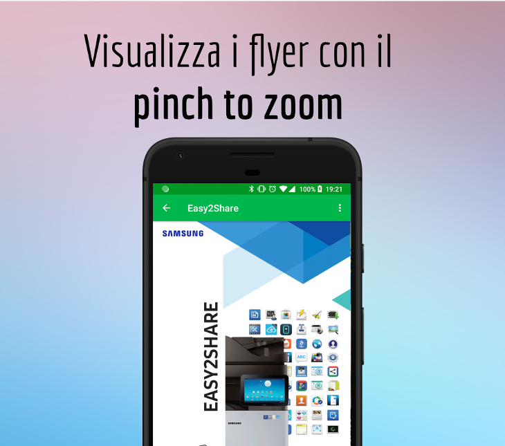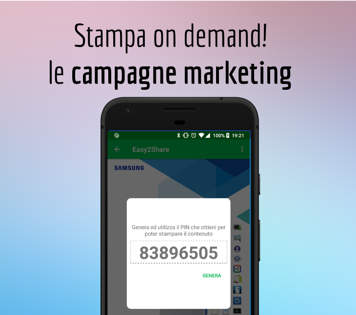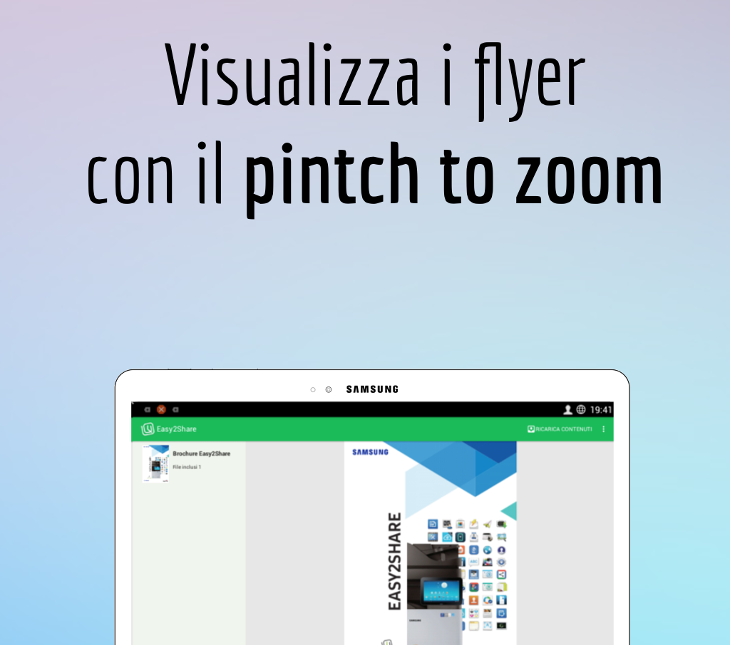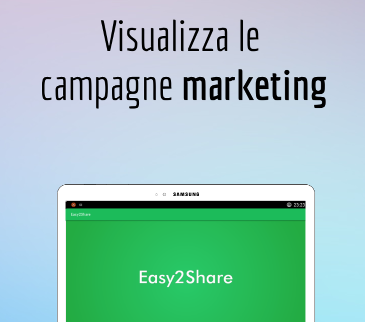 Easy2Share è un modo semplice per diffondere il tuo materiale pubblicitario, sia video che cartaceo, su una vasta gamma di dispositivi che comprendono smartphone/tablet e stampanti.